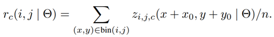 이제 각 cell에 들어갈 값(r)을 구하는데, 논문에서는 Average Pooling을 사용하고 있지만 다른 방법을 사용해도 괜찮다고 한다. 여기서 n이 하나의 bin에 포함되는 pixel의 개수이고(Average), ∂는 network의 학습 가능한 모든 파라미터를 의미한다. (특수문자 못 찾게써여..)