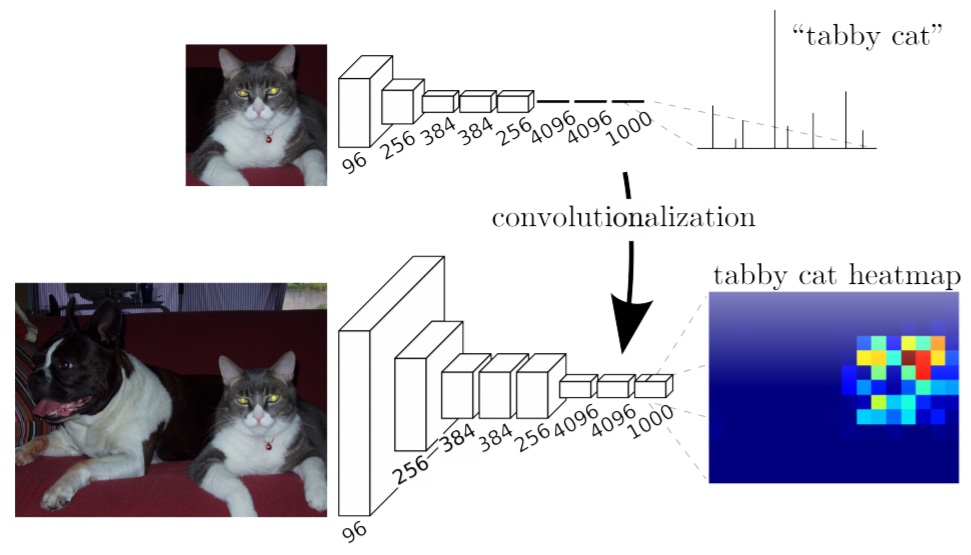 여기서 image classification과 detection의 차이를 알아야하는데, 보통 convolutional layers를 거쳐 특징들을 뽑아내고 마지막에 fc계산을 통해 classification을 내리는데, 이 방식은 image에 label만 부여할 뿐, 해당 object가 이미지 내의 어디에 있는지에 대한 위치정보가 사라지게 된다.