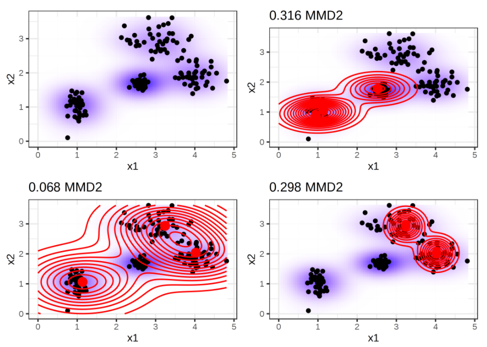 - 나머지 그림 : 다양하게 선택된 Prototypes와 같이 계산된 MMD^2의 측정치