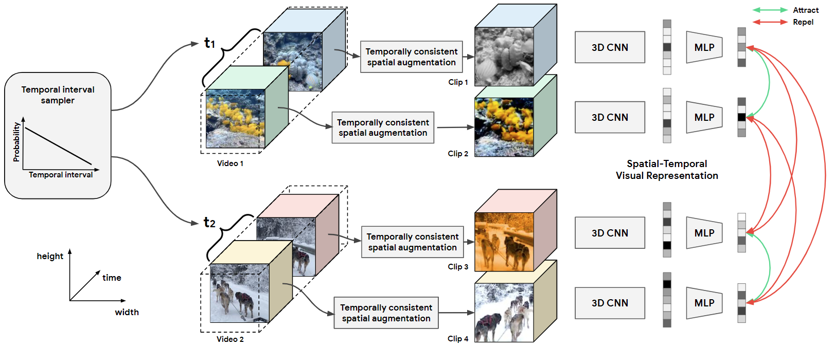 이 sampling 방법을 통해 다양한 시점에서 생성된 clip pair들을 얻을 수 있기 때문에, 이전의 단점들을 개선한 temporal augmentation을 적용할 수 있다.