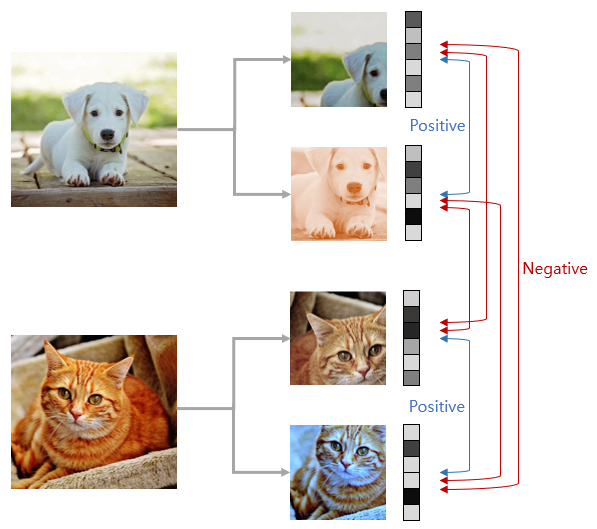 Contrastive learning은 self-supervised learning의 대표적인 방법 중 하나로, input sample들 사이에서 positive pair를 묶은 후에 embedding space 내에서 positive sample끼리는 까가워지고 negative sample끼리는 멀어질 수 있도록 학습하는 방식이다.