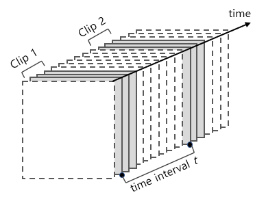 - Raw video data로부터 clip samples 생성 (Temporal augmentation)