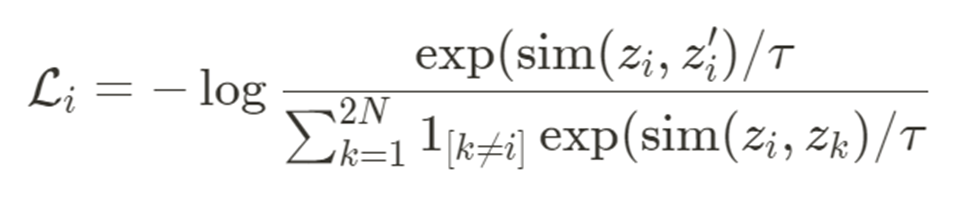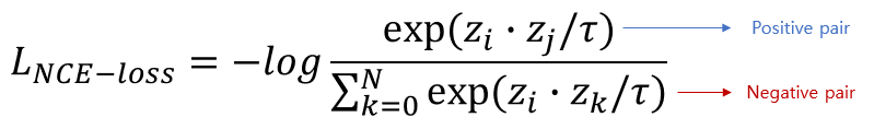 각 video마다 2개의 positive pair embedding을 생성했다면, embedding space 내에서 positive clip끼리는 가까워지게, negative clip끼리는 멀어지게 학습할 수 있도록 loss를 정의해야 한다. 이 논문에서는 InfoNCE contrastive loss를 적용한다.