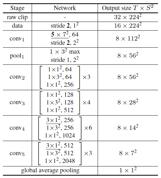 - 첫 번째 convolution layer의 temporal kernel size를 5로, stride를 2로 사용