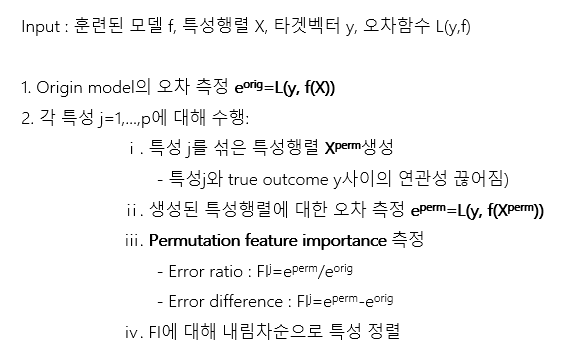 특성 값을 섞은 후에 모델의 prediction error를 측정하여 구하는 방식